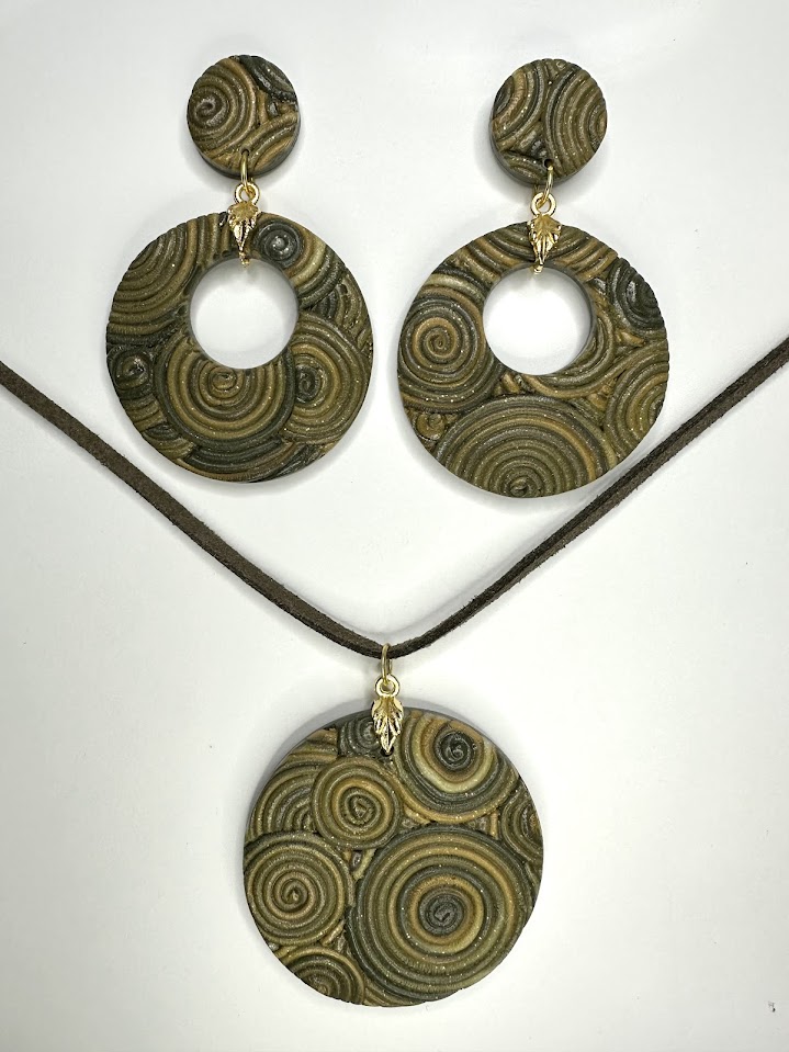 Polymer clay necklace+earrings.